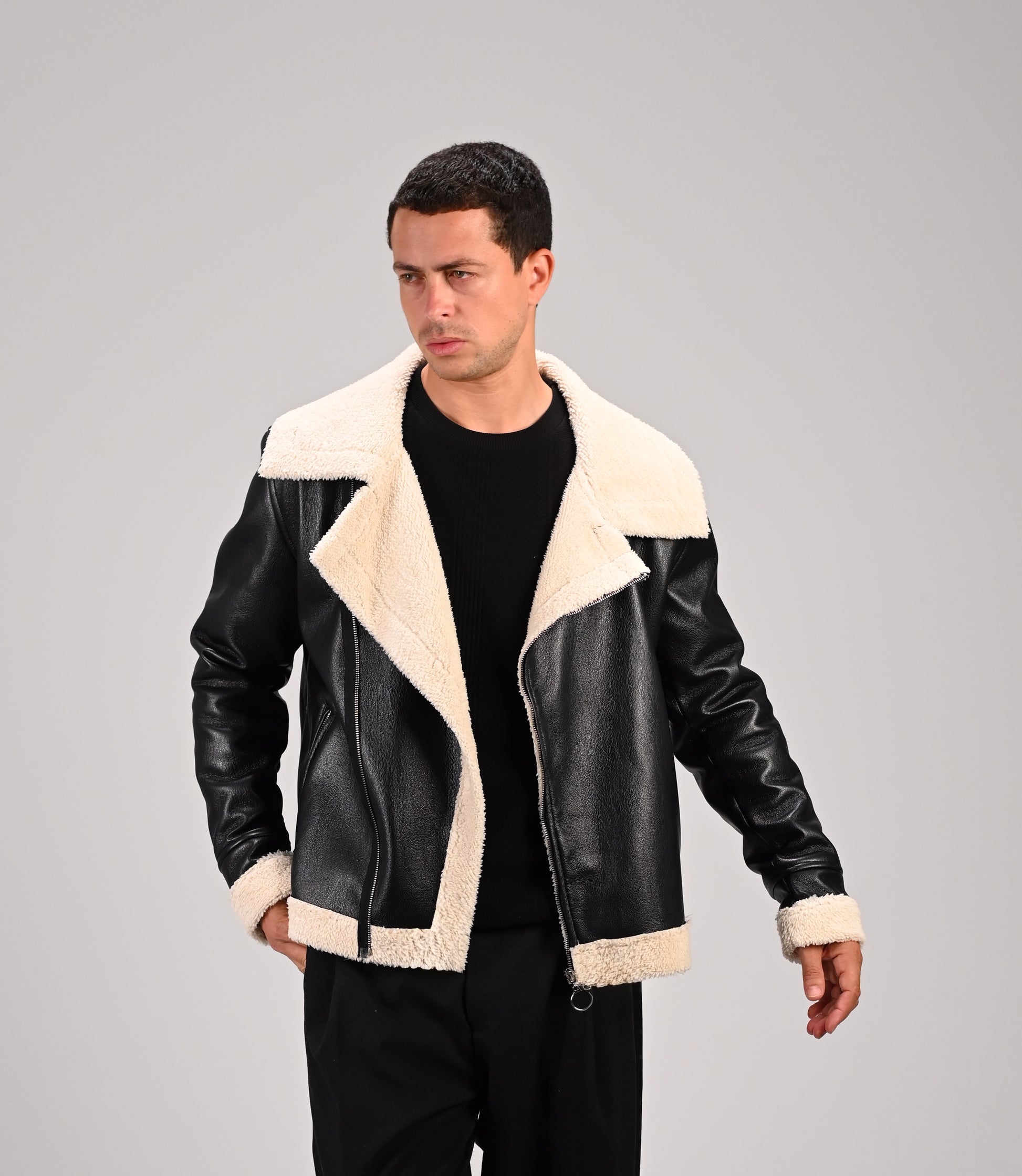 A cozy lined leather aviator with a bold edge, crafted to keep you warm while serving a clean, elevated look. Perfect for effortless winter styling.