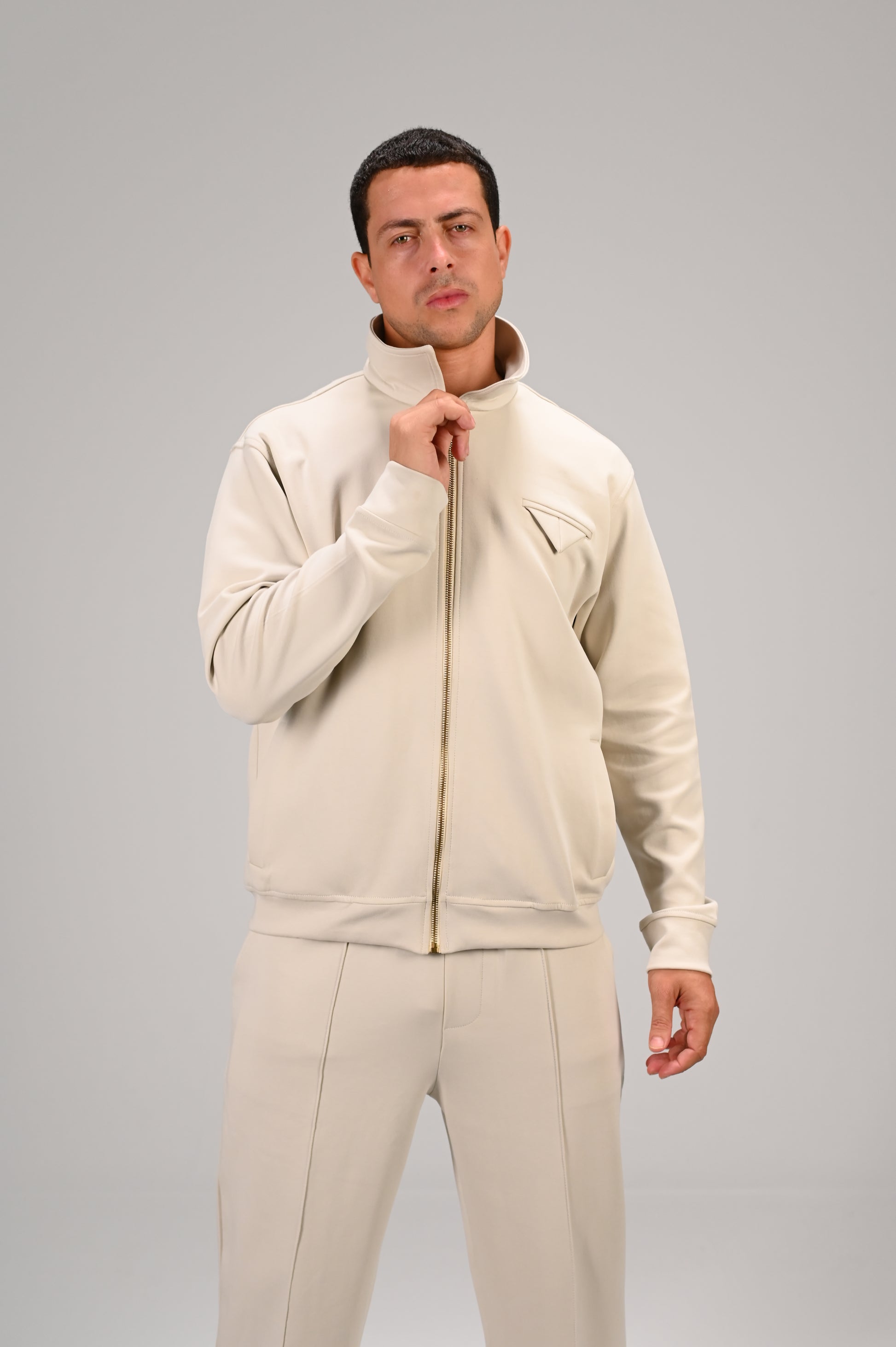 A relaxed fit set designed for effortless, modern style. The zip up jacket paired with straight cut pants creates a sharp yet easy going look, perfect for everyday wear.